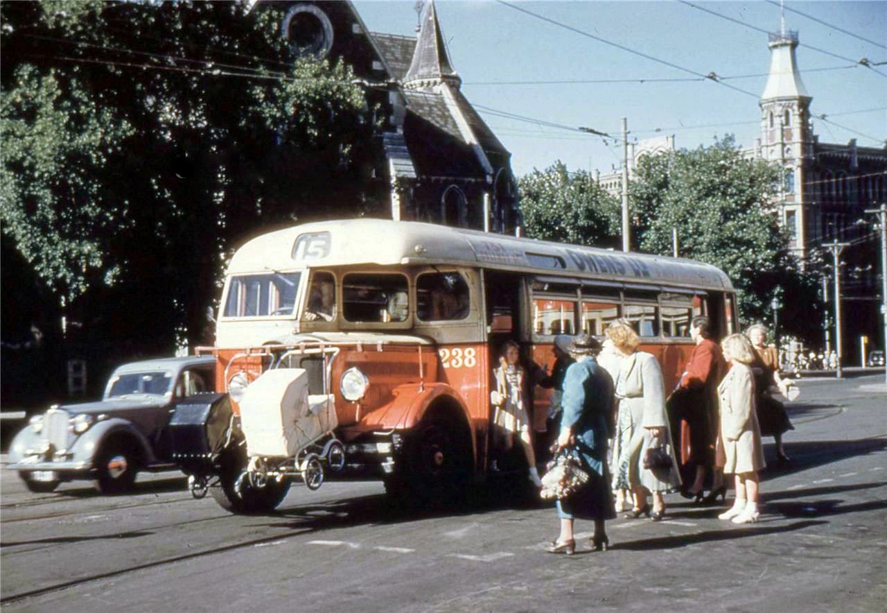 transpress nz AEC Regal 'halfcab' bus in Christchurch, 1950s